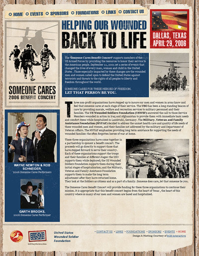 Designing website template for the event to support wounded US soldiers.